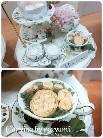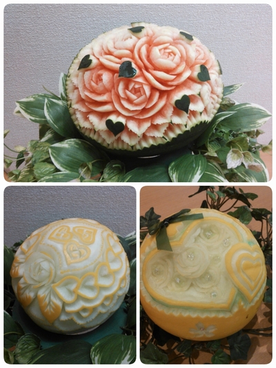 1週間フルーツカービングを飾るということで、中間でチェンジしたフルーツカービング達は