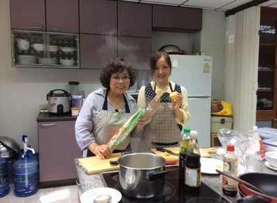 『シーフード入りお好み焼き』 5枚は、Toey先生も手伝ってくれました。