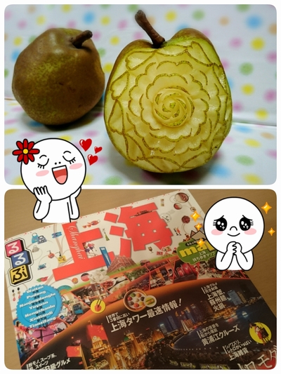 固めの洋梨があるから彫って下さいと、生徒さんからいただいた洋梨(^O^)