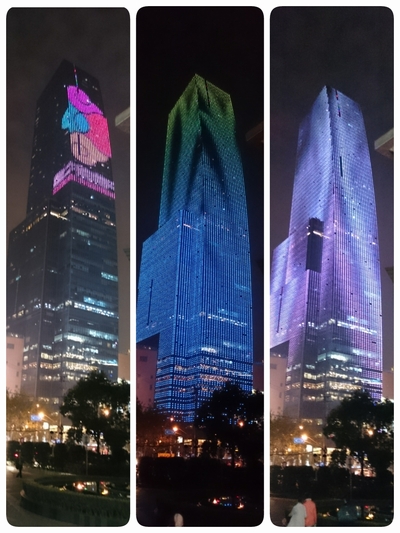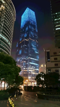目の前の会社です。昼のビルと夜のビルとではこんなに違うの、毎日違うから