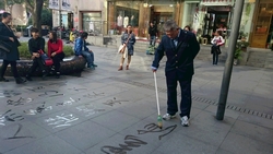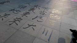 お水で書道の練習、とってもお上手です(^^) 綺麗に書けていいな、羨ましい。