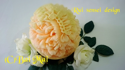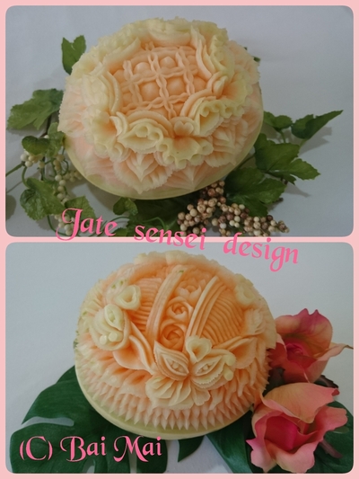 タイのメロンは皮が軟らかくて彫りやすいですね。