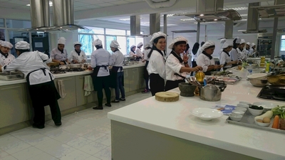 料理教室も大きくてビックリ、生徒さんもとっても真剣に取り組んでくれて