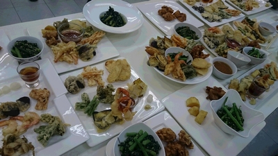 マリサで天ぷら、唐揚げを作りました。先生達とマリサの生徒さんも合わせて
