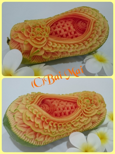 バンコク最初のカービングは、日本であまり彫れないパパイヤ(#^.^#)