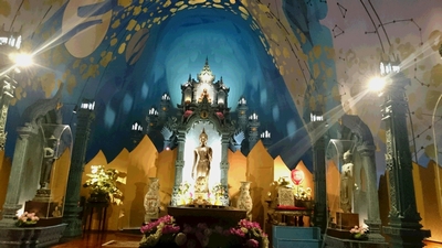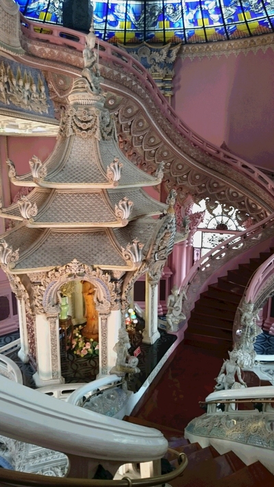 天井は大きなヨーロッパの教会風のステンドグラスになっています。