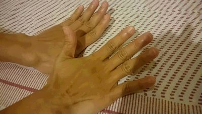 腕のマッサージ➡顔にホワイトニングしてパリパリなって取る➡