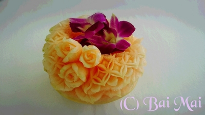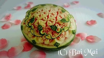 スイカは日本のより皮が柔らかく、割れないから彫りやすい(^-^)v