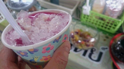 暑いです、練乳をたっぷりかけた かき氷が最高です♪