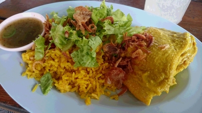 黄色いご飯のチキンライス『カオモックガイ』といいます。